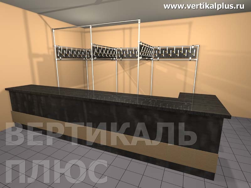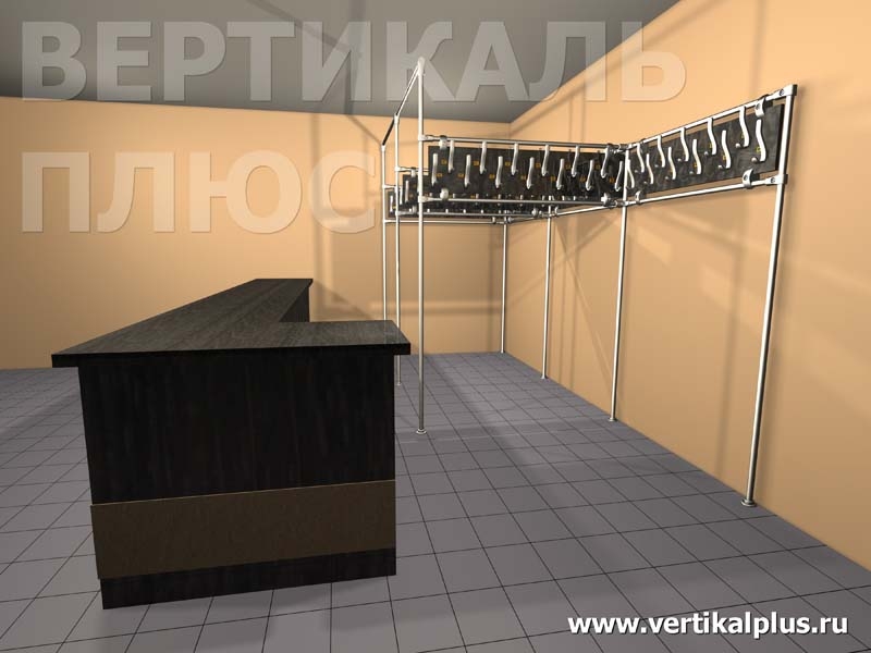 Напольный стационарный гардероб (напольные вешала) – совокупность секций, соединенных между собой универсальными креплениями и дугами. Для увеличения прочности конструкция гардероба закрепляется не только к полу, но и к стенам.