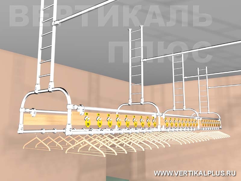 Подвесной гардероб (подвесные вешала) – конструкция, позволяющая экономить пространство нижней части помещения. Она надежна, полностью безопасна и удобна для использования персоналом.